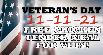 [11-3-21] In honor of Veteran's Day, we're serving up FREE 2pc Chicken Tender Meals for Veterans!